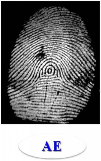 Chủng vân tay AE là chủng lai giữa vân tay núi và vân tay Đại bàng. Vì thế, AE sẽ mang đặc điểm của 2 chủng này: Quyết tâm, mạnh mẽ, sống cảm xúc. Người thuộc chủng AE rất thông minh, có khả năng tiếp thu kiến thức nhanh, có mục tiêu và cố gắng đạt được mục tiêu đó. Hình thái của chủng AE sẽ khác với chủng vân tay núi: 1 tâm và 2 Delta.
