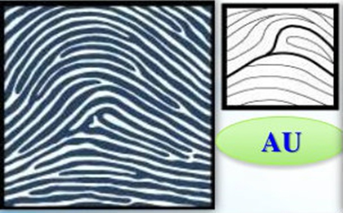 Ở Việt Nam, có khoảng 5% số người có chủng vân tay núi AU. Người có vân tay này có trí nhớ rất tốt, nhanh nhẹn và nhạy bén với các sự việc. Đồng thời họ cũng có khả năng khá lớn trong sáng tạo và linh hoạt.