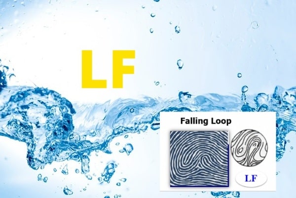 Chủng vân tay nước – Falling Loop (LF) là một trong những chủng vân tay hiếm, được lai giữa nước và núi. Nên tính cách của họ được kết hợp giữa sự linh hoạt, dễ hòa nhập của nước cùng với khả năng hấp thụ kiến thức vô hạn của núi. Để nhận dạng, bạn có thể thấy ở tâm vân tay giống hình dáng thác nước đột ngột đổ xuống và có đường gãy bên trên nó.