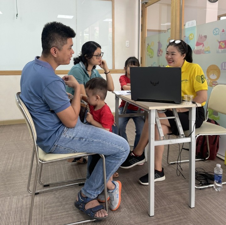 Tại đây, các bậc phụ huynh có thể xem và lắng nghe các chuyên gia nói về từng dấu vân tay