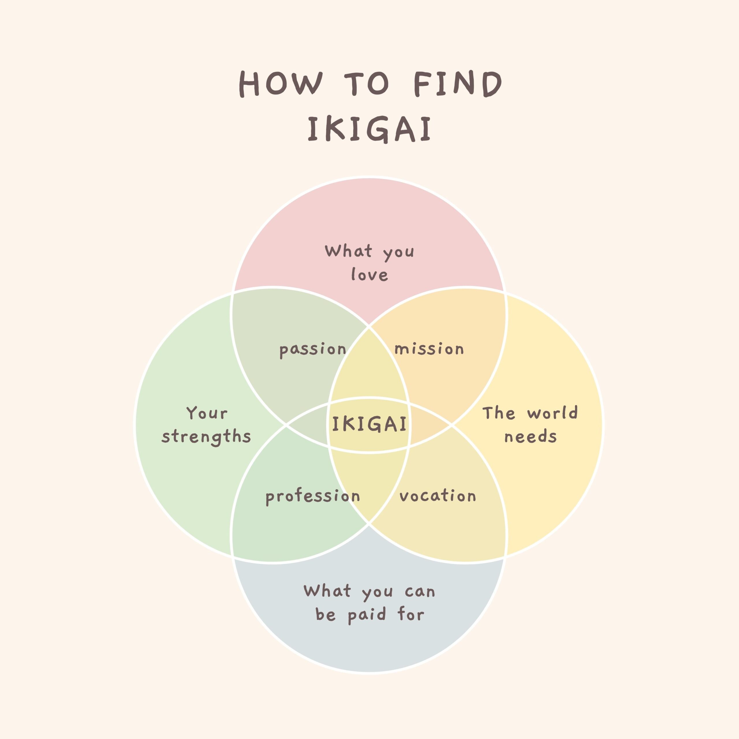 Lưu ý: Tìm thấy ikigai của bạn không có nghĩa là bạn sẽ yêu thích mọi khía cạnh trong sự nghiệp của mình. Nó có nghĩa là bạn sẵn sàng chấp nhận ngay cả những phần không quá hoàn hảo. Điều này là do sự nghiệp của bạn phù hợp với những gì bạn yêu thích, những gì bạn được trả tiền và những gì thế giới cần.